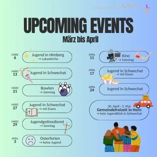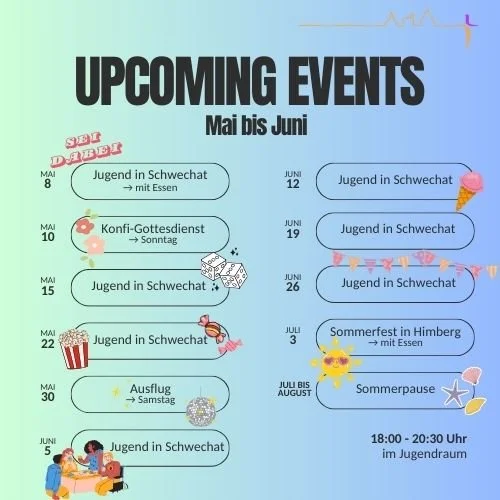 Für mehr Infos schreib deine Fragen einfach an unser Team (Emi und Sascha): jugend@evangschwechat.at