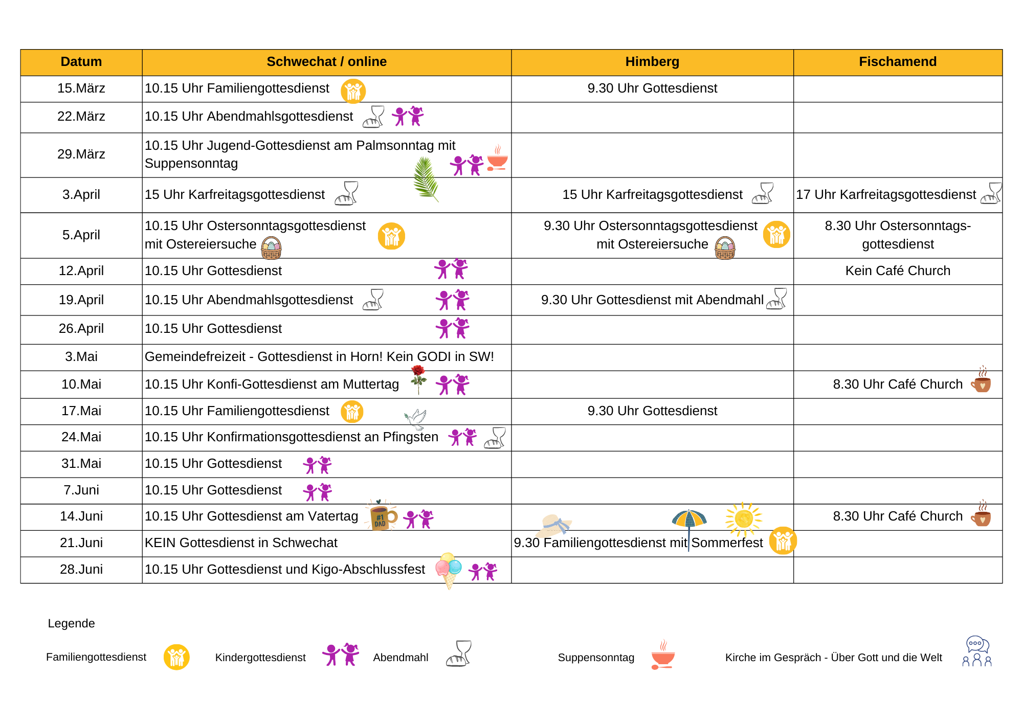 Übersicht Gottesdienste